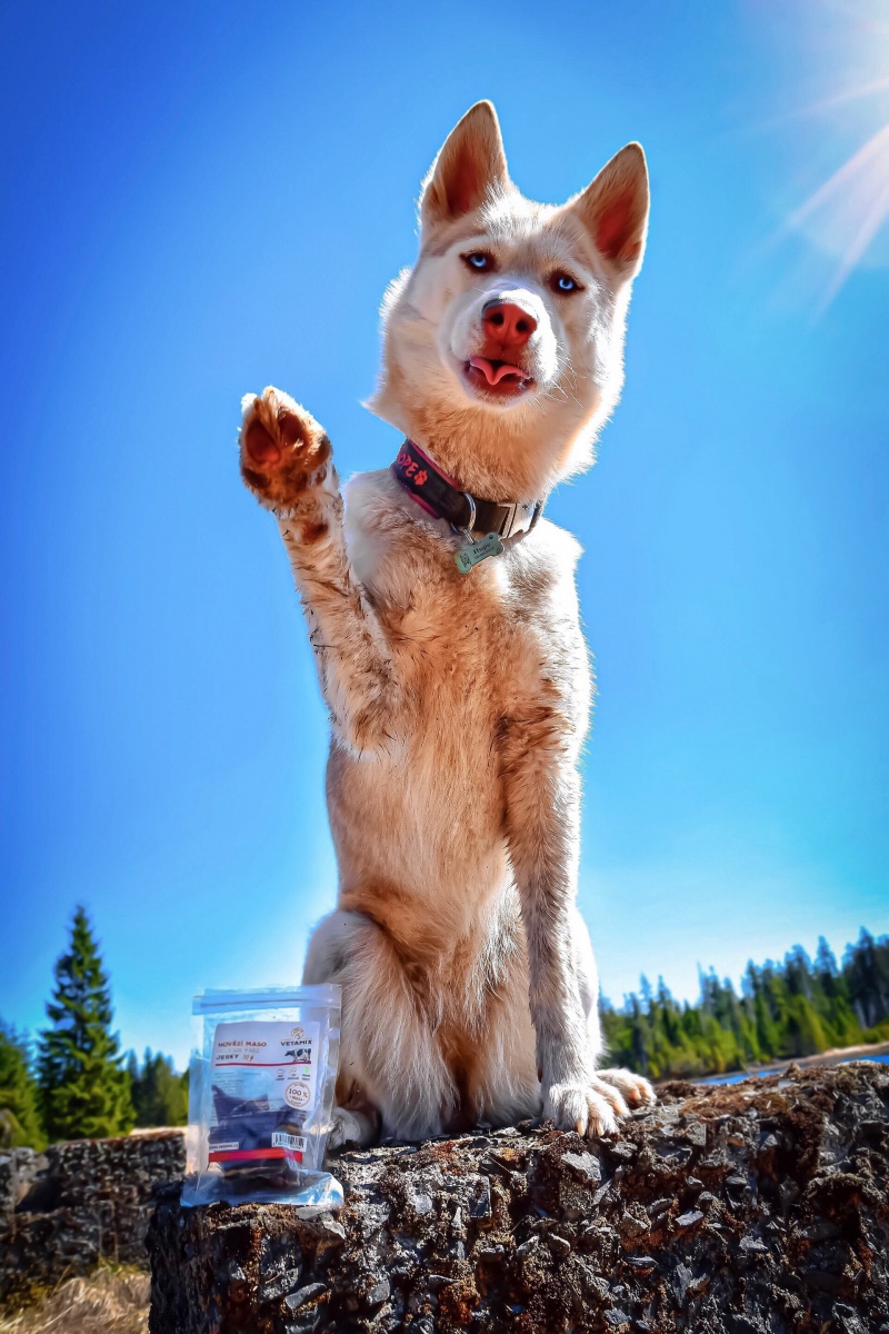 Nemôžem povedať, že je v tom pravidelnosť. Moja práca je časovo náročná, a preto sa stane, že tri dni majú psíci voľno, a potom sú aktívni trebárs štyri dni za sebou. Niežeby som s nimi bola vonku celé štyri dni, ale každý deň doprajem im aj sebe fyzickú záťaž. Na toto vždy myslím dopredu, a preto im chystám ľahší jedálny lístok. Dbám na to, aby ich strava mohla byť dobre a rýchlo premenená na energiu. Preto vyberám napríklad kuracie mäso a hlavne sa nebojím sacharidov. Je to zdroj pohotovej energie. Môžem im dopriať aj viac tuku, ale samozrejme si dávam pozor na to, aby to boli tuky živočíšne. Tuky vôbec sú zdrojom dlhodobej energie, a preto keď sú aktívni niekoľko dní, je to ideálne, aby mali dosť síl. Trochu im uberiem vlákninu, takže nedostávajú klasickú porciu zeleniny a ovocia. Nesmiem ale zabudnúť na to, že keď som vonku a psi majú aktívnejšie obdobie, tak mám vždy so sebou malú porciu energie a to napríklad vo forme maškŕt, konkrétne hovädzích JERKY od Vetamixu. To im veľmi chutí a obsahuje vysoký podiel živočíšnych bielkovín. No a samozrejme myslím aj na prísun tekutín. Noste so sebou vodu pre psíkov. Dehydratácia môže nastať veľmi rýchlo obzvlášť v týchto teplých dňoch a s nastávajúcim letom to je pre nich veľmi dôležité.