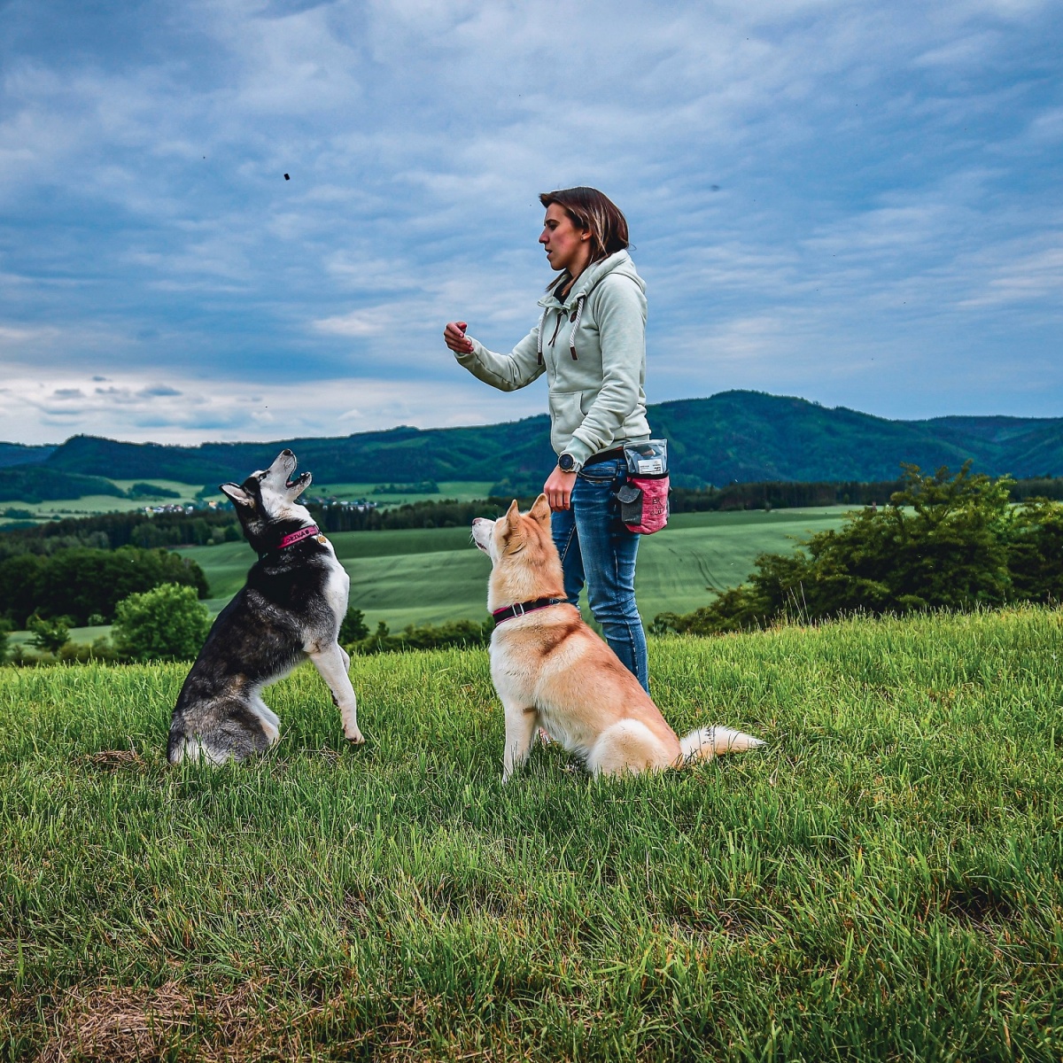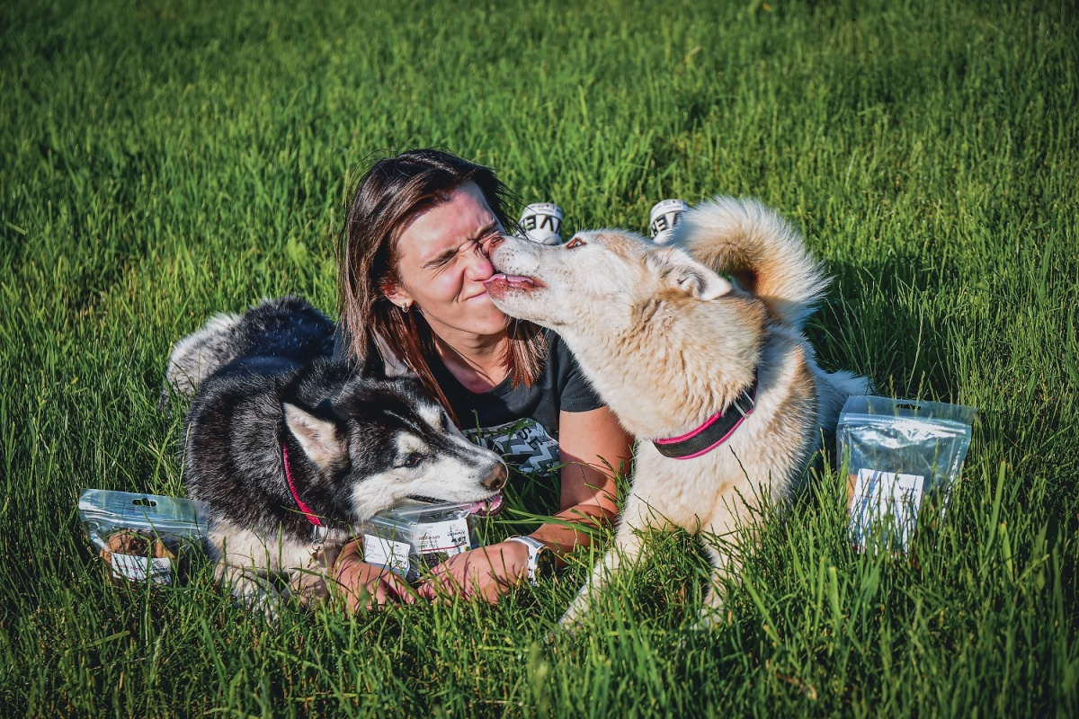 Nie je to len o cvičení, ale hlavne o opakovaní a drile. Po každom výcviku nasledovalo opakovanie. Vždy keď to bolo len trochu možné, chodili sme na lúky za domom a tam trénovali a trénovali. Chodenie vedľa nohy, odloženie, privolanie. Snažíme sa, aby pes nebol nikdy pred nami na vôdzke, ale aby bolo vedľa nás. Aby na prvý povel urobili to, čo majú. To je veľmi ťažká úloha, v ktorej máme stále rezervy, ale postupne sa nám darí postupovať dopredu. Motivácia psíkov je tu veľmi dôležitá, a ak pes niečo vyvedie a je pokarhaný, tak musí vzápätí prísť odmena za splnenie inej úlohy. Jednoducho psík musí byť stále motivovaný. Našťastie ich motiváciu máme vždy so sebou. Hovädzie mäso JERKY od Vetamixu je perfektný motivačný nástroj, s ktorým sa Hope a Corina dokážu sústrediť a vedia, že nemá cenu robiť hlúposti, ale to, čo od nich chceme. Corina a Hope sa vďaka cvičeniu pod odborným dohľadom naučili spolu pracovať a ja som sa vyvarovala chýb, o ktorých som nemala ani potuchy.