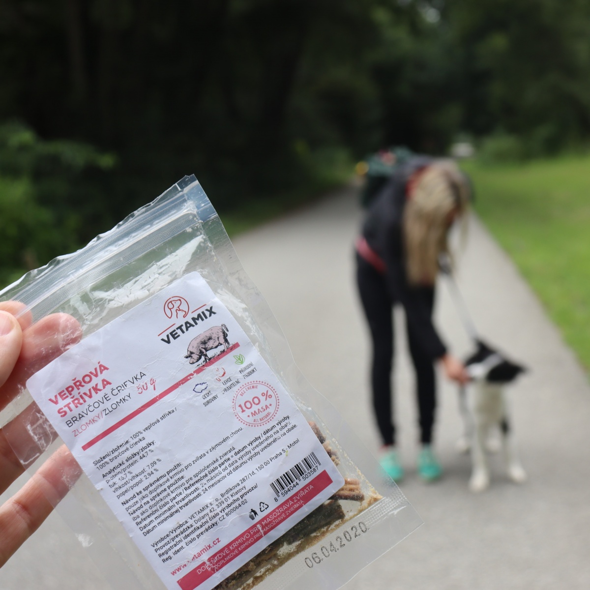 Tréning počas prechádzky nám mimo domova dokáže priniesť rozptýlenie v reálnom svete, kde sa spolu učíme od základných až po tie náročnejšie povely. Riešenie takýchto “psích hádaniek” si vyžaduje veľkú energiu. Výcvik na prechádzkach znamená, že sa Rusty, ale aj Vaše šteniatko musí viac sústrediť, a zároveň pracovať na odfiltrovaní rušivých vplyvov, čo si teda vyžaduje istú dávku energie. Inými slovami, myslenie je tvrdá práca a tá sa u nás vždy odmení dobrou maškrtkou od Vetamix