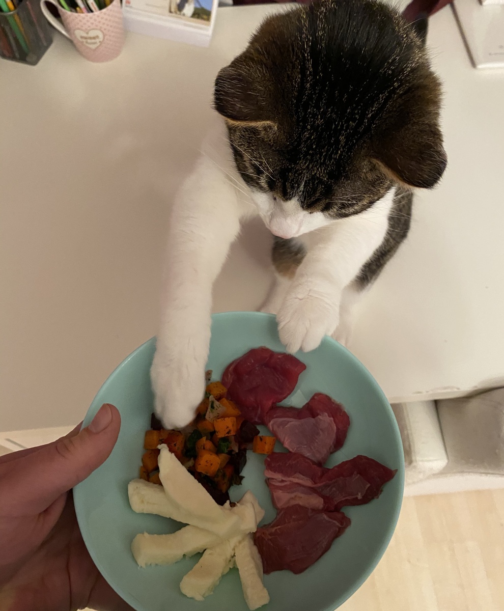 Keď si to po sebe čítam, môže sa zdať, že potrebujete mnohoročné skúsenosti a znalosti v oblasti výživy, aby ste správne a prirodzene nakŕmili mačku, ale nie je to tak. Najdôležitejšie je, aby sa vaša mačička cítila dobre a zdravo. To, aké konkrétne druhy mäsa budete podávať, je už iba na vašom rozhodnutí. Do úvahy berte aj to, či je vaša mačka aktívna, v akom výživovom stave je, aký je jej vek, či potrebuje pribrať alebo by naopak bolo vhodné jej váhu trochu zredukovať. A hlavne skúšajte, skúšajte, skúšajte. O mačičkách je všeobecne známe, že sú prieberčivé, preto môže nejakú dobu trvať, kým spoločne zostavíte také jedlo, ktoré bude obsahovať všetko, čo mačka potrebuje a bude jej chutiť. Budeme vám držať palce!