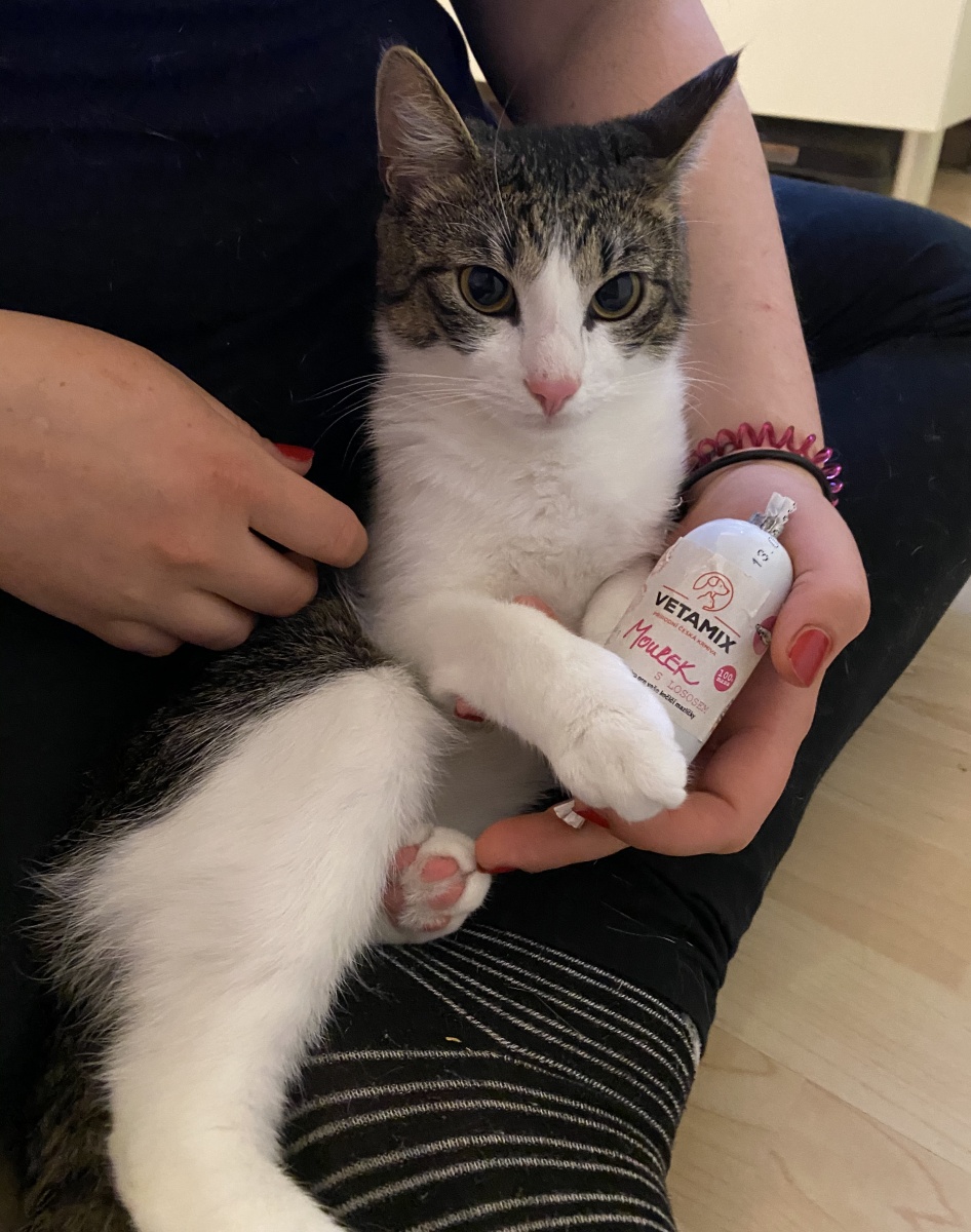 S rybami jako takovými bych sice počkala do trochu pokročilejšího věku kotěte, kvalitním lososovým olejem ale určitě nic nezkazíte! A za ten od Vetamixu se mohu zaručit, je opravdu skvělý! Svým dospělým kočičkám jím zakapávám téměř každé jídlo, u koťátka bych volila jen jednu dávku denně, ale rozhodně by podle mě měl být do jídelníčku zařazený.