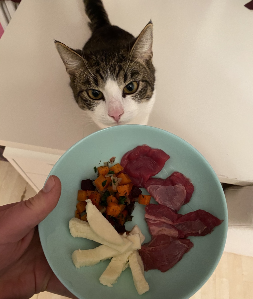 Když si to po sobě tak čtu, může se zdát, že k tomu, abyste správně a přirozeně nakrmili kočku, potřebujete mnohaleté zkušenosti a znalosti v oboru výživy, ale není to tak. Nejdůležitější je, aby se Vaše kočička cítila dobře a zdravě. To, jaké konkrétní druhy masa budete podávat už je čistě na Vás. Zvažte, jak aktivní kočičku máte, v jakém výživovém stavu je, jak je stará, jestli potřebuje přibrat, nebo by naopak bylo vhodné její váhu trochu redukovat. A hlavně, zkoušejte, zkoušejte, zkoušejte. O kočičkách je všeobecně známo, že jsou vybíravé, proto může nějakou dobu trvat, než společně sestavíte takové jídlo, které bude obsahovat všechno, co kočka potřebuje a bude jí chutnat. Budeme Vám držet palce!
