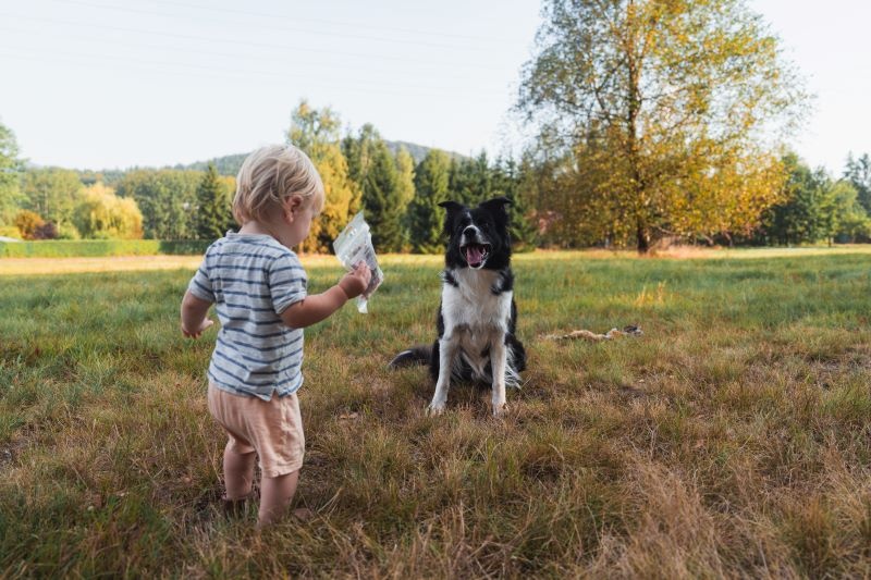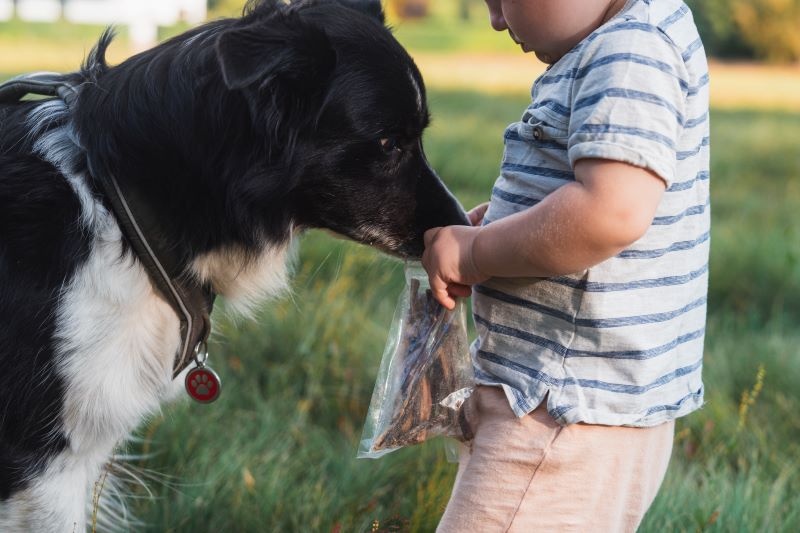 Dítě může psa snadno zapojit do tréninku pomocí pamlsků. Při společných procházkách nebo cvičení může dítě psa odměňovat za správné chování.
