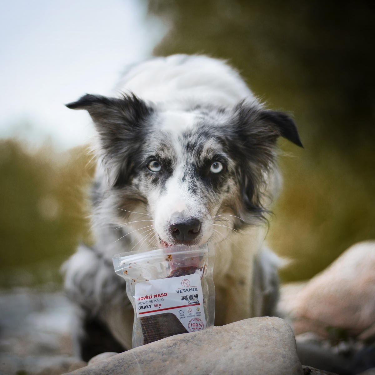 Sušené hovězí maso Jerky je zdravá lahůdka, kterou můžete dopřát svému čtyřnohému kamarádovi za odměnu při výcviku nebo jen tak pro radost.