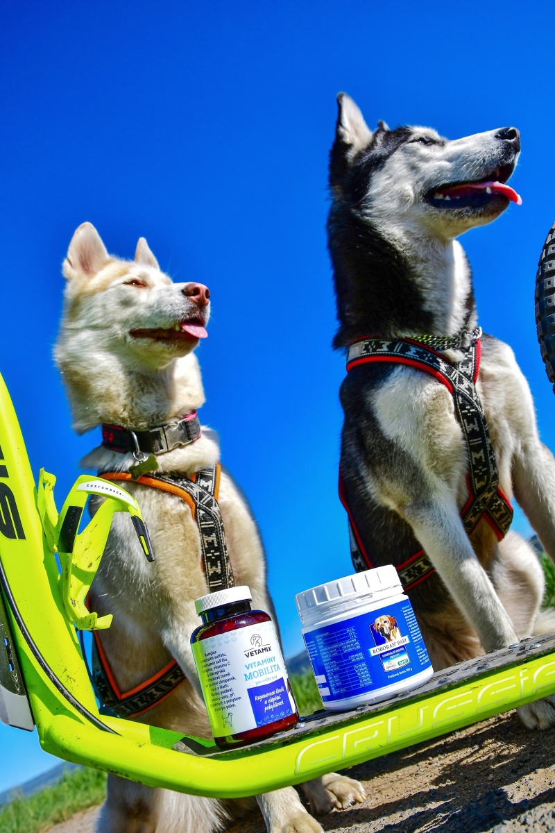 Toto téma mohu vztáhnout přímo k sobě a mým pejskům Corině a Hope. To jsou, jak dobře víte dvě Huskyny. Takže velmi aktivní pejsci, kterým nevadí běhat půl dne po zahradě, pak několik hodin venku a zbytek dne zase na zahradě. Pořád jsou velmi mladé, a proto je nezbytně nutné udržet jejich tempo, co se týče stravy a dalších doplňků k udržení jejich bezvadné kondice na pozdější věk. Když stárneme, tak i my lidé musíme brát určité doplňky stravy na podporu pohybového aparátu a další tělu prospěšné látky. U pejsků není na co čekat, protože jejich život běží bohužel o něco rychleji než u nás lidí. Navíc Vám pejsek neřekne s čím má zrovna problémy a proto musíte být obezřetní a všímaví. Zkrátka musíte mít pejska načteného.