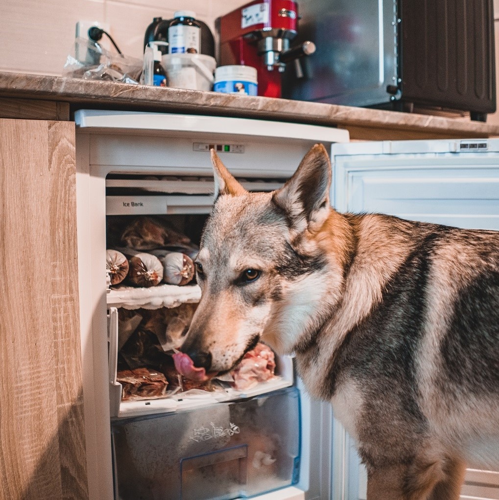 Stejně je nutné přistupovat ke krmení pro chlupáče. Udělejte jim zásoby několik dní. Ve Vetamixu toho mají vždy dostatek a to i teď. My si objednáváme asi 10 kg masa a 10 kg kostí zhruba na měsíc a máme vystaráno. Máme ale doma mrazák, který je jen Krakenův. Nemícháme to s jídlem pro nás, protože tam uskladňujeme i velké morkové kosti a je to prostě cítit.