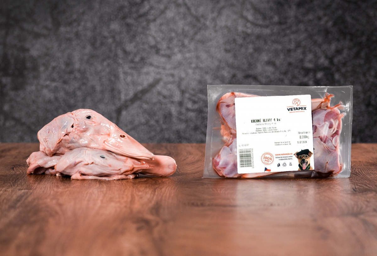 Vetamix kachní hlavy jsou pochoutka plná kolagenu pro chlupáče za odměnu nebo jen tak pro radost.