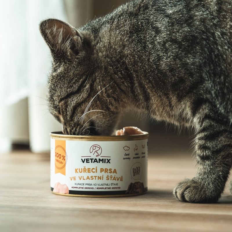KUŘECÍ PRSA VE VLASTNÍ ŠŤÁVĚ obsahují pouze libovou, netučnou kuřecí svalovinu. Dopřejte ho i psům a kočkám na dietě nebo se zažívacími problémy.