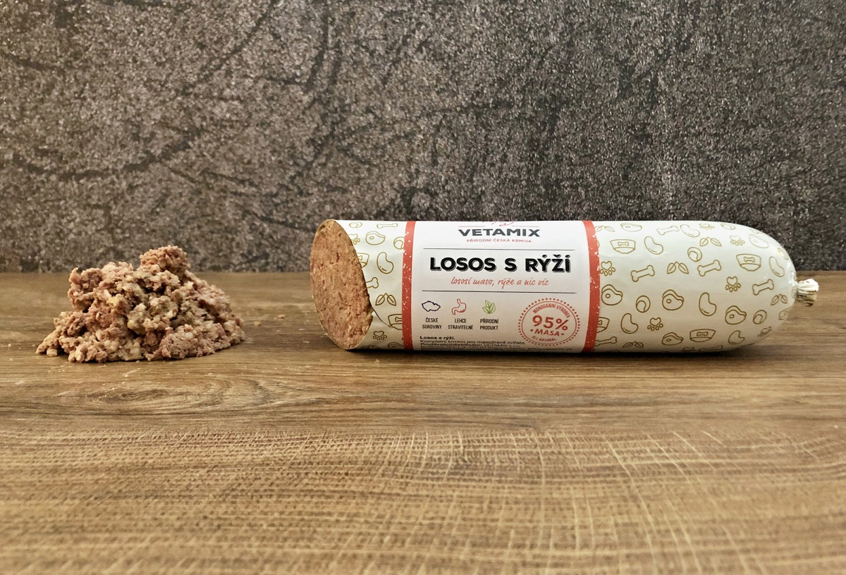 Šetrně sterilizovaný salám z lahodného lososa je skvělou alternativou krmiva, pokud nemáte zrovna po ruce mrazák pro klasický BARF.