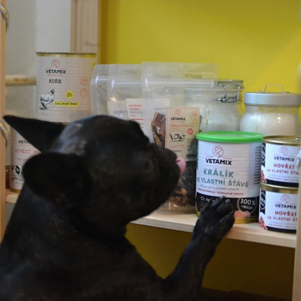 Vetamix nabízí širokou škálu konzerv, ze kterých si určitě vyberou i ti největší vybíravci. Máme tady příchutě jako kuře, králík ve vlastní šťávě, hovězí mix, hovězí ve vlastní šťávě. Jen o tom píšu, už se mým psům zbíhají sliny.