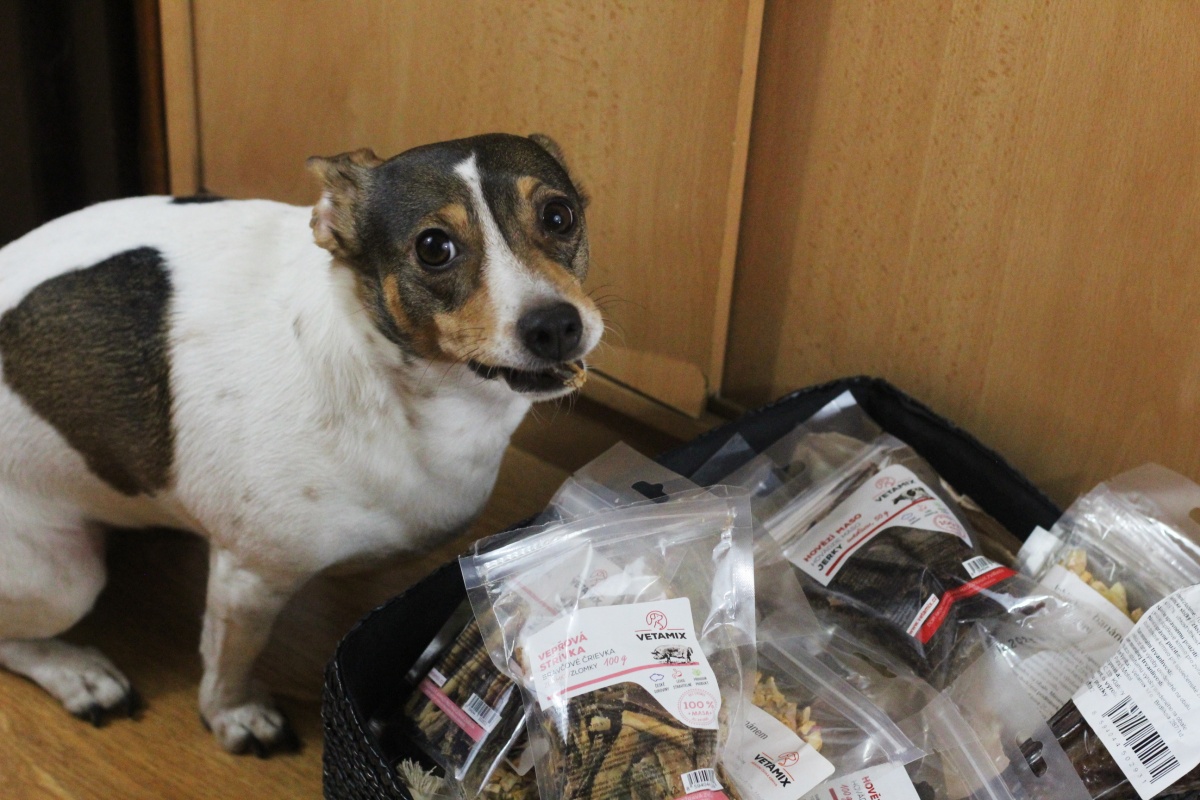 Když máme tu možnost, nevím, proč bych nemohla udělat radost ostatním pejskům. I když se s tím moc nikde nechlubím, věřím, že i firma Vetamix je ráda. Tyhle produkty máme zavřené v bedně, ale moc se tam taky neohřejou.