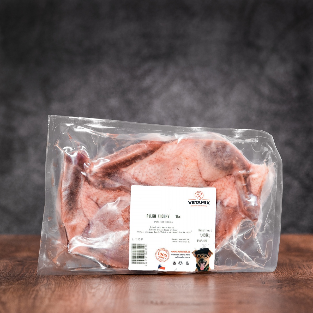 Půlka kachny prémiové kvality pochází od prověřených lokálních farmářů. Balení obsahuje výživově hodnotné a lehce stravitelné kachní maso a kosti, které jsou vhodné pro každodenní doplnění vápníku přirozenou cestou.