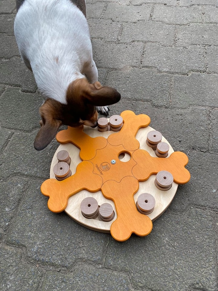 Nejúčinnější zábava, jak pejska unavit jak psychicky, tak fyzicky. Na internetu se dnes už dá sehnat velká škála psích hlavolamů. Od jednoduchých po nejtěžší. Ale pozor, hlavolamy si můžete za pár minut vyrobit i doma. Postačí vám k tomu třeba pet lahev, nebo ruličky od toaletního papíru. Návodů na internetu je taky spousta.