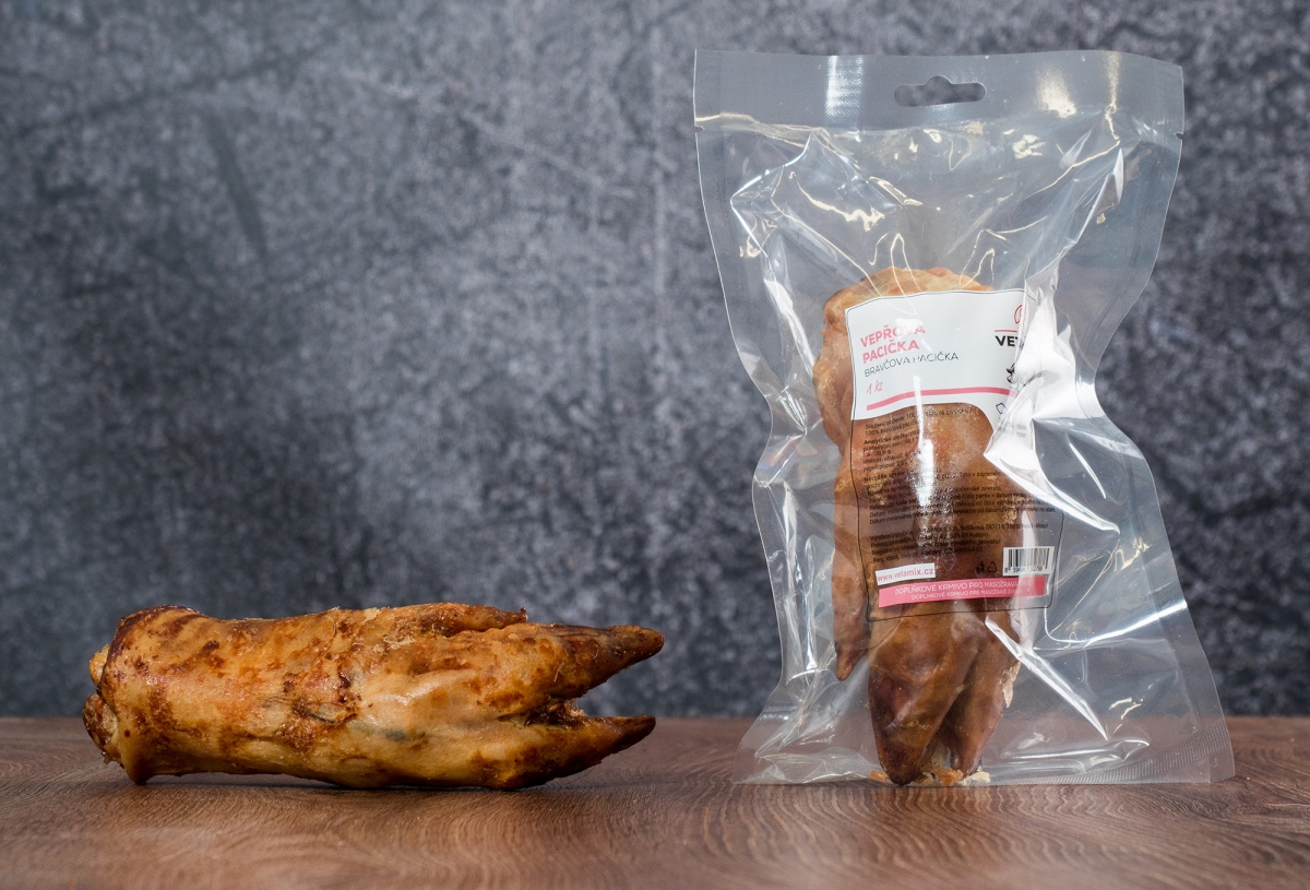 Sušená vepřová pacička je pochoutka plná minerálů, která chlupáče zabaví a zároveň pečuje o jeho zuby a dásně.