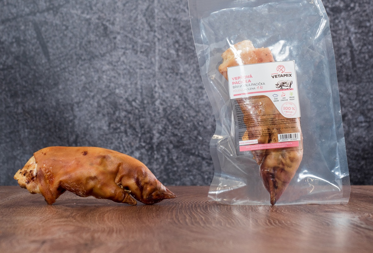 Sušená vepřová pacička je pochoutka plná minerálů, která chlupáče zabaví a zároveň pečuje o jeho zuby a dásně.