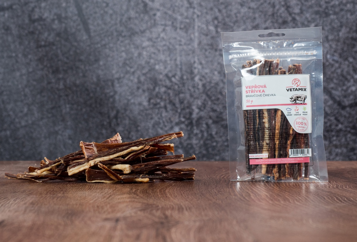 Sušená vepřová střívka jsou neodolatelnou žvýkací lahůdkou, jejichž vůně přivábí všechny čumáčky.