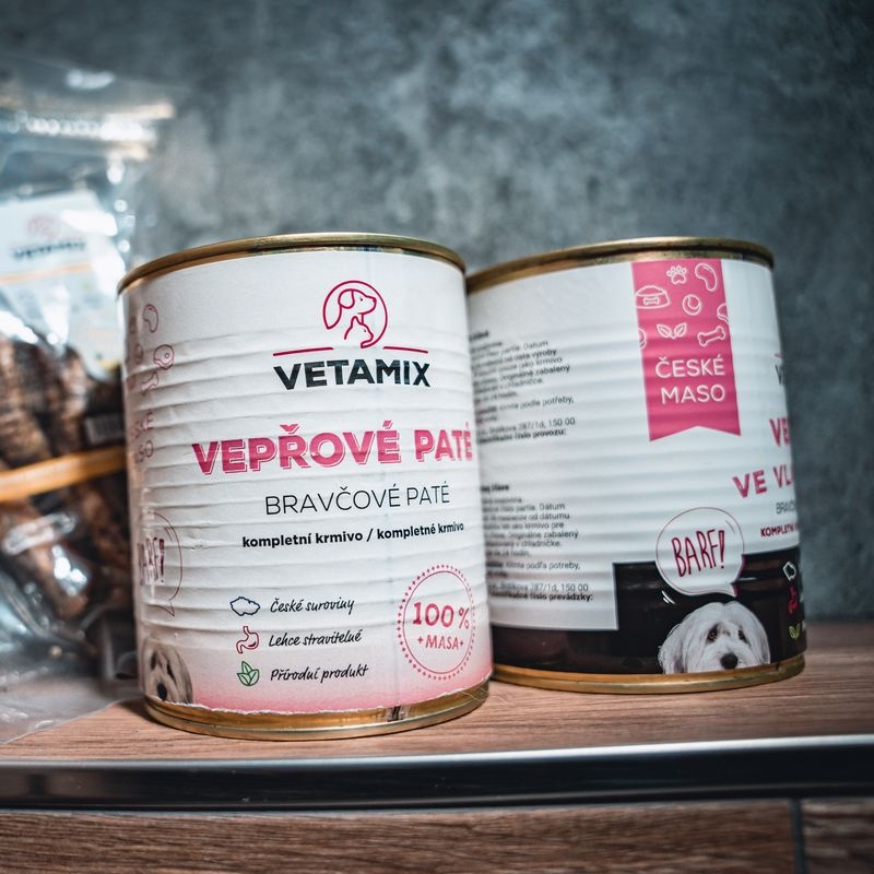 Vepřové paté obsahuje prémiové, výživné, vepřové maso namíchané ve vyváženém poměru s hovězí a kuřecí svalovinou, droby a namletými kostmi. Produkt je zcela přírodní, bez éček, lepku a dalších chemických přísad. Dopřejte ho i psům a kočkám na dietě nebo se zažívacími problémy.