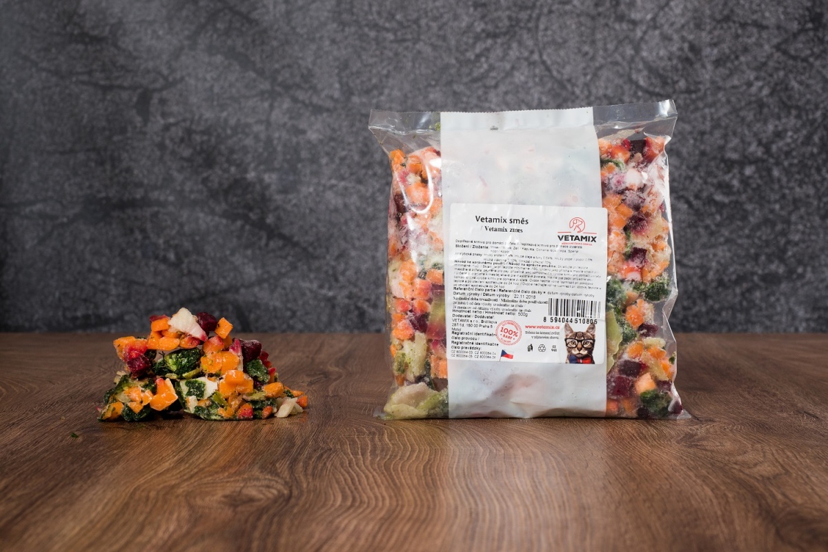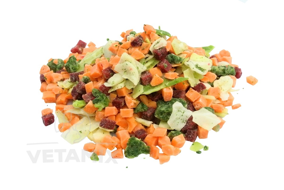 Hluboce zmrazená zdravá směs mrkve, řepy, špenátu a kopru z českých zahrad je pro vašeho chlupáče skvělým a chutným doplňkem k masu.