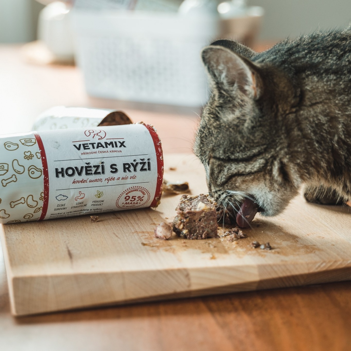 Našu salámu Hovädie s ryžou využijete ako doma, tak aj na cestách s chlpáčom. Obsahuje 95 % hovädzieho mäsa z lokálnych zdrojov,bohatého na dôležité proteíny a ľahko stráviteľné tuky. Zvyšok tvorí kvalitná biela ryža, ktorá je ideálnou hypoalergénnou prílohou. Bez obáv ho môžete dopriať aj psom a mačkám s alergiami alebo zažívacími problémami.