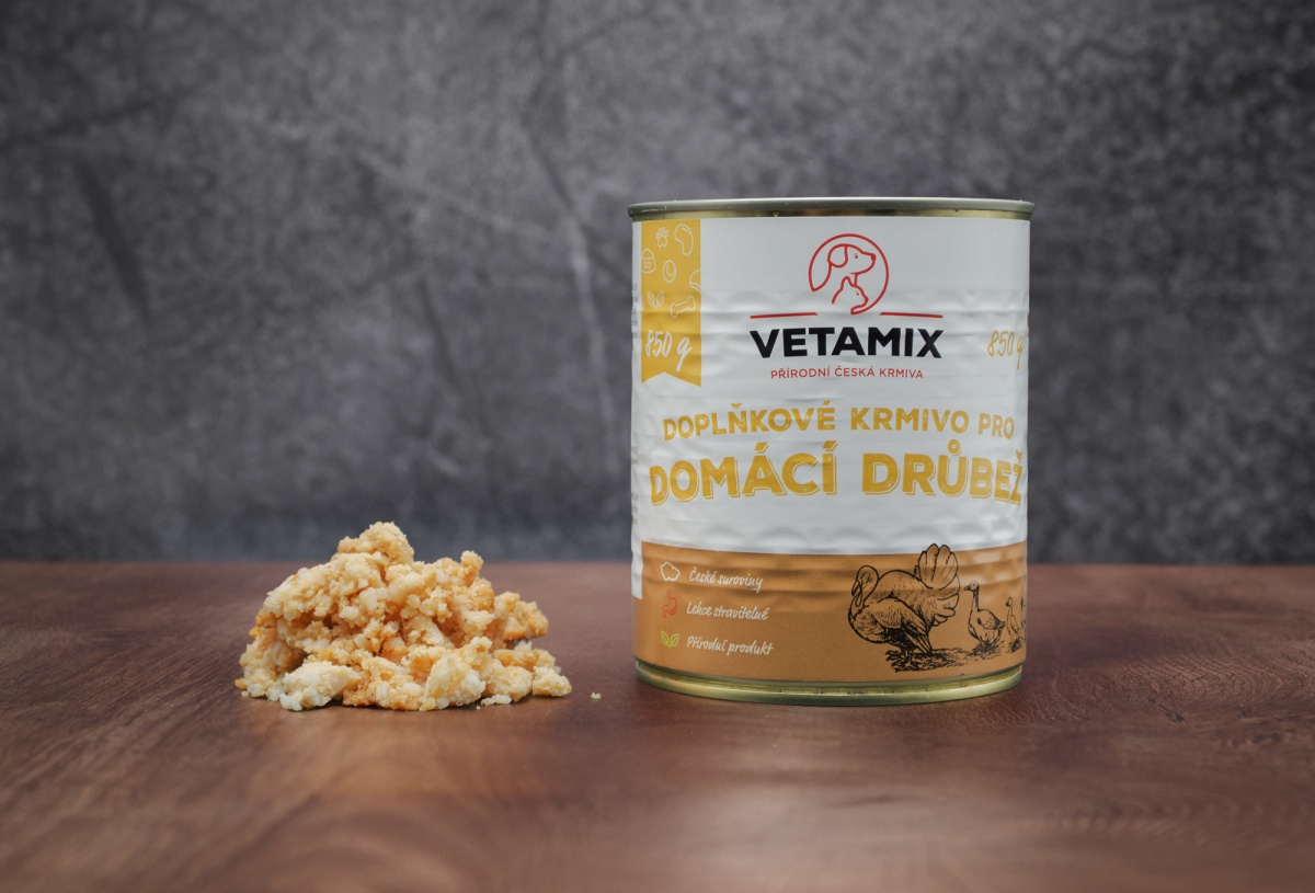 Doplnkové krmivo pre domácu hydinu v konzerve. Pridávajte k dennej dávke krmiva podľa uváženia, veku, kondície a zdravotného stavu zvierat.