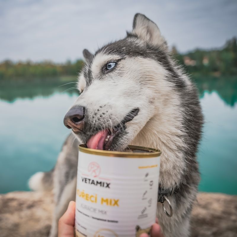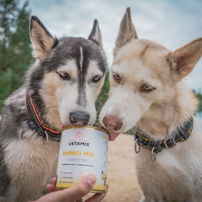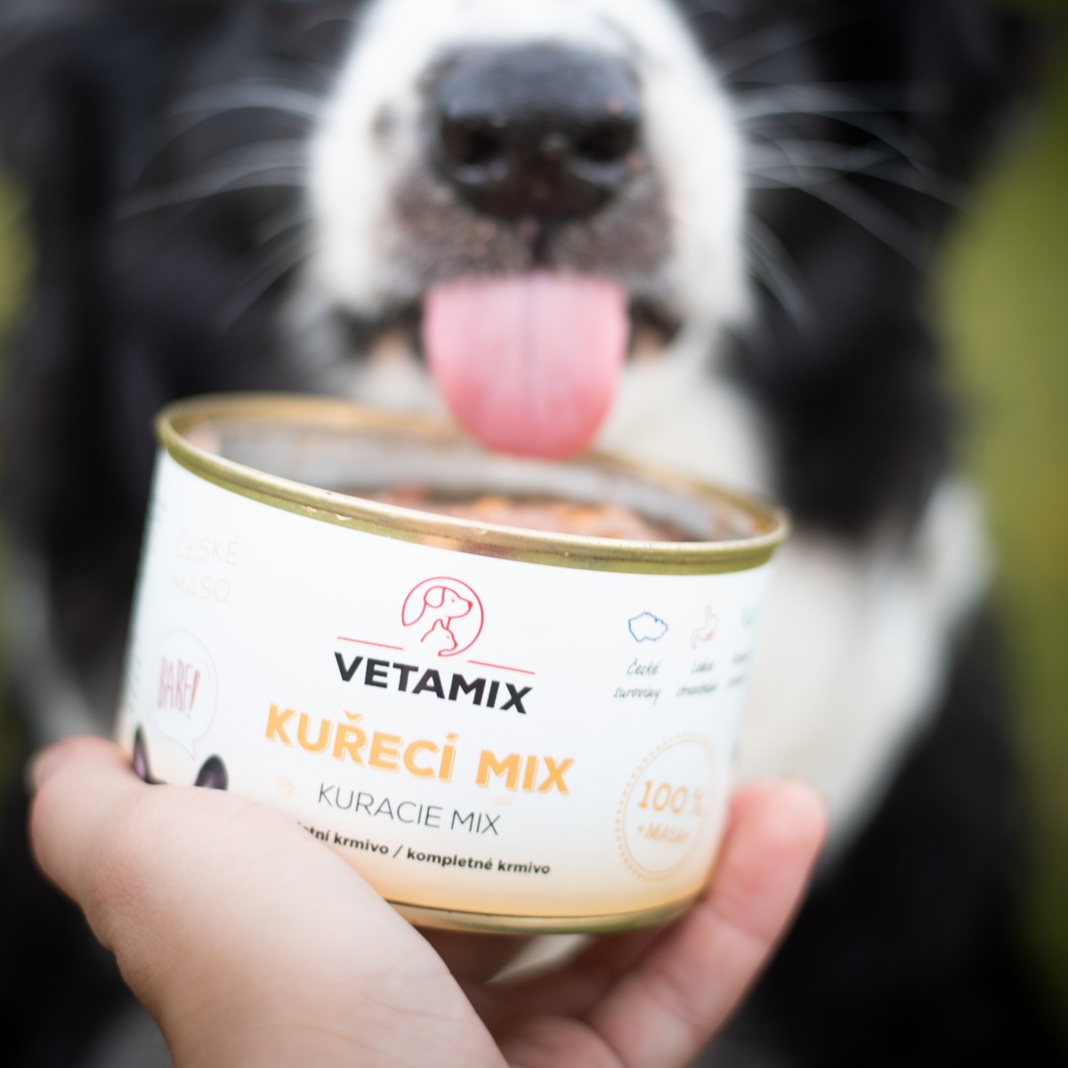 Séria konzerv "MIX" obsahuje vždy 40 % prevažujúceho druhu svaloviny vo vyváženom pomere s ďalšími druhmi mäsa, drobami a jemne mletými kosťami.