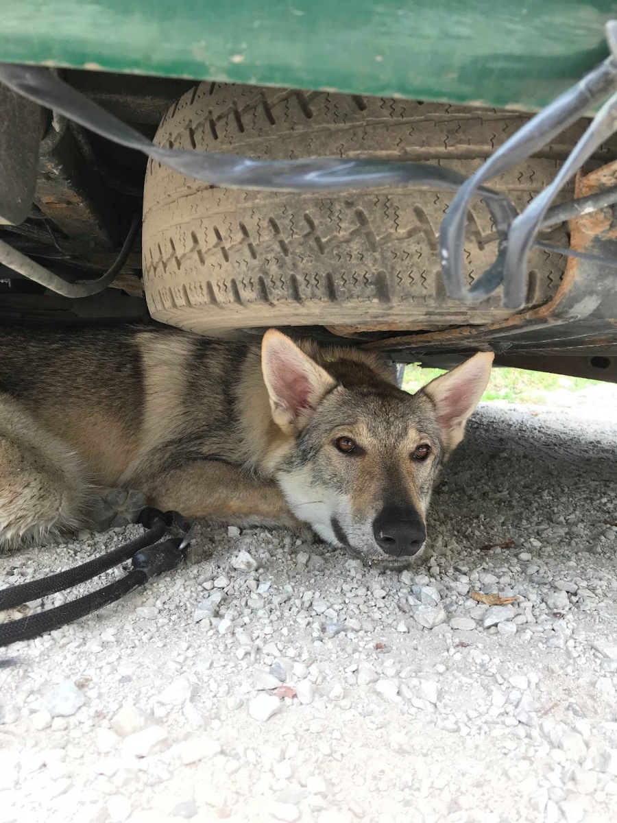 • naučiť Krakena byť v kľude v aute aj niekoľko hodín;