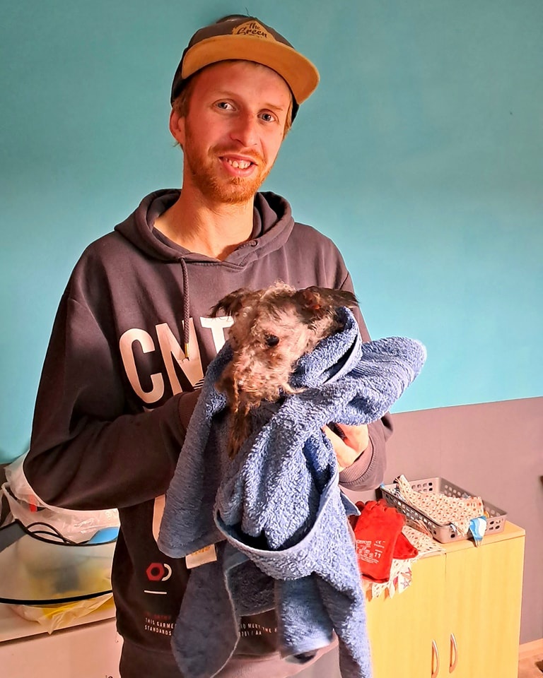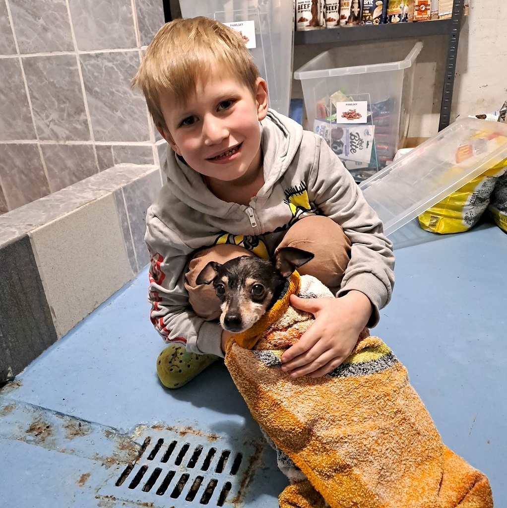 Pre začiatok sme sa rozhodli dať ho do poriadku z tej vonkajšej strany, pretože bol zalepený do jednej chlpatej gule. Vzali sme ho do psieho kaderníctva, ktoré s nami spolupracuje, aby ho oholili.