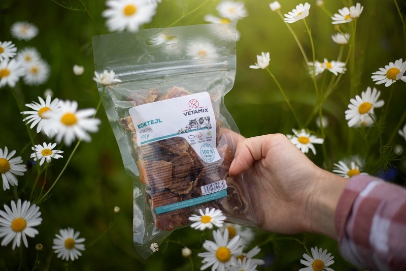 ☝️ Neodporúčam koktail podávať psom, ktorí hltajú jedlo. V balení sa nachádzajú aj trochu väčšie kúsky a psíkovi, ktorý hltá bez hryzenia, sa nerozhryznutý tvrdý kúsok môže nepríjemne zaseknúť v krku.