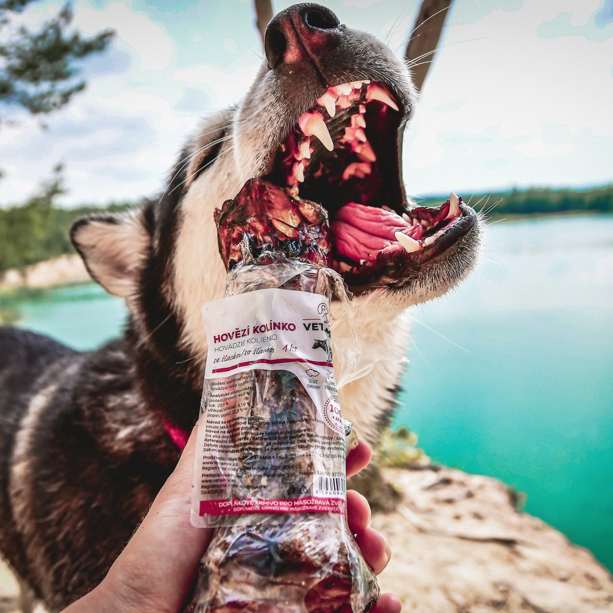 Sušené hovězí kolínko je lahůdka obsahující zbytky šlach a vaziv na kloubu. Váš chlupáč si tak užije kopec zábavy při kousání.