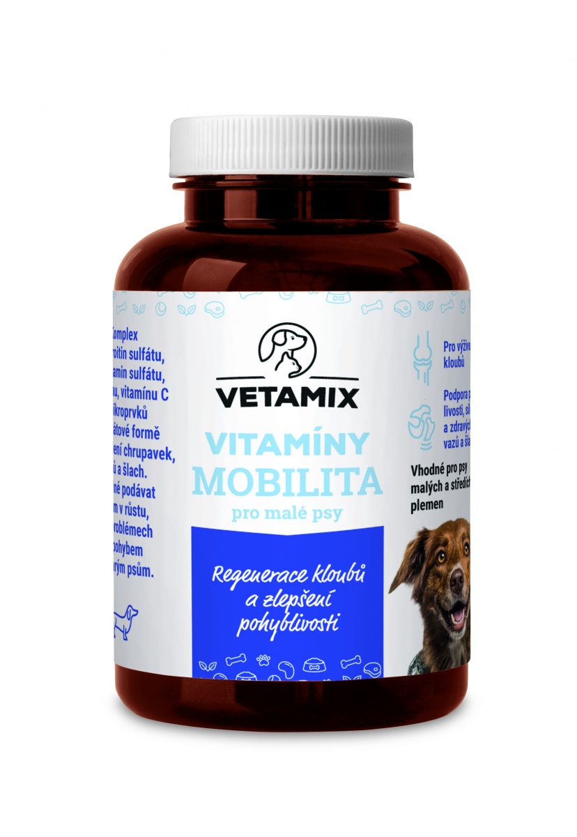 Prihoďte chlpáčovi do misky vitamíny Vetamix mobilita, ktoré sú zdrojom komplexnej kĺbnej výživy na regeneráciu a ochranu chrupaviek, väzív a zlepšenie hybnosti kĺbov počas ich vávoja, rastu a bežného namáhania u rastúcich a zdravých psov. Alebo ako súčasť liečby degeneratívneho ochorenia kĺbov (osteoartritis) na potlačenie zápalových procesov, úľave od bolesti a na zlepšenie hybnosti kĺbov.